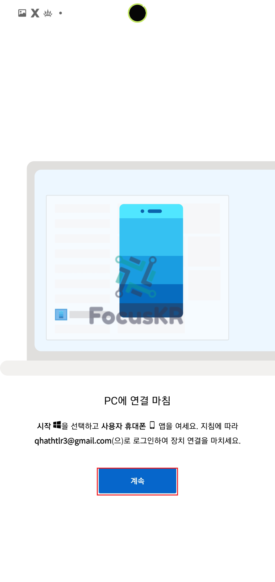 7. '계속'을 누르면 자동으로 연결이 되어 아래와 같이 PC에서 확인하실 수 있습니다.