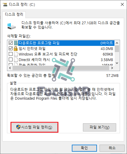 3. 디스크 정리에서 '시스템 파일 정리' 를 눌러줍니다.