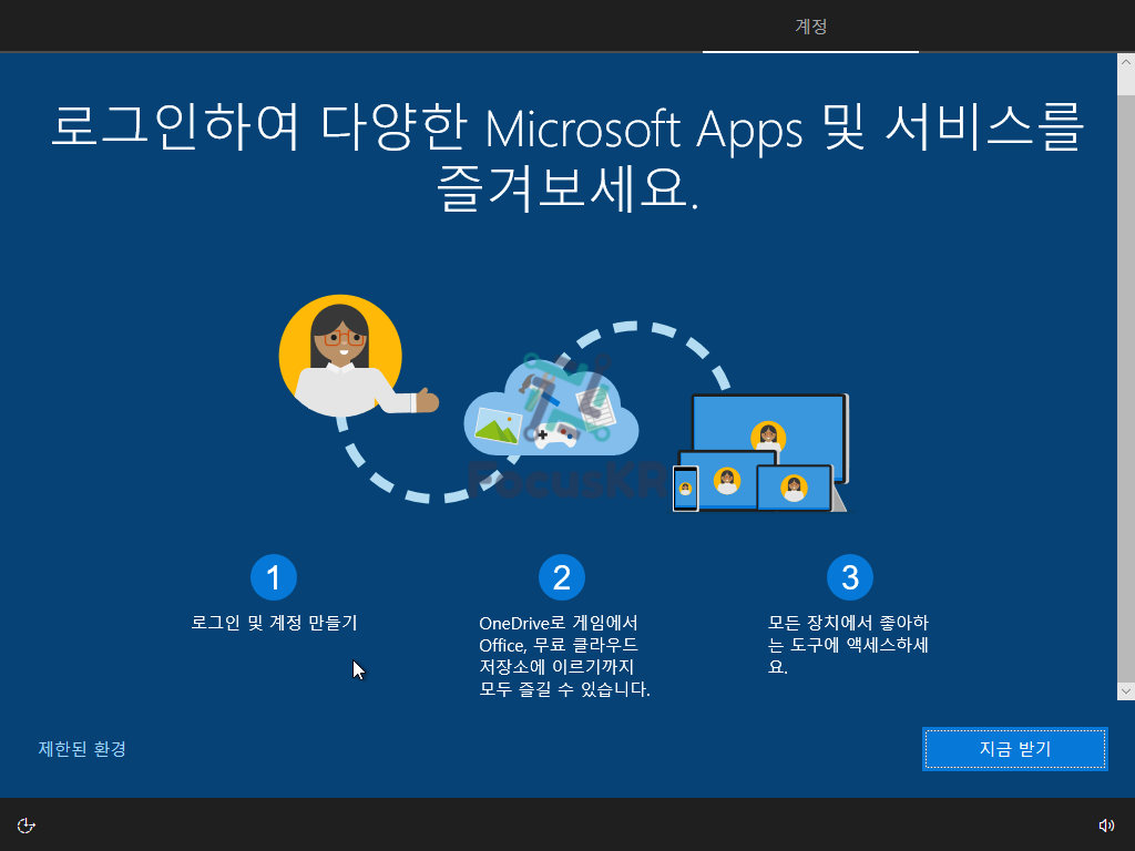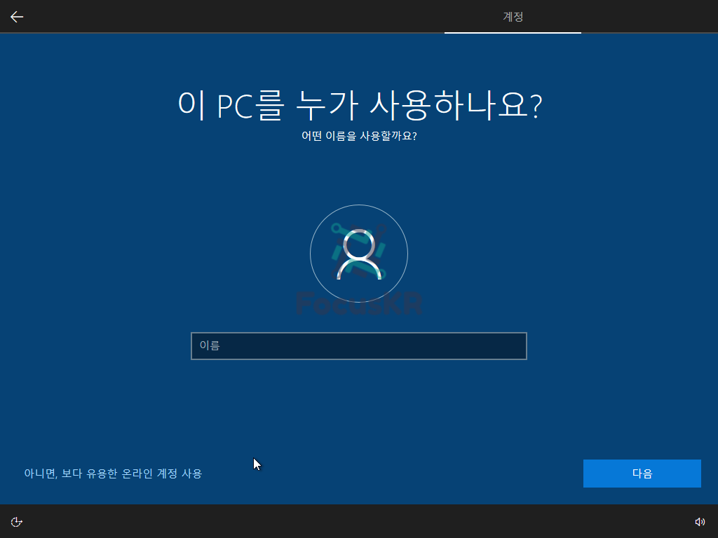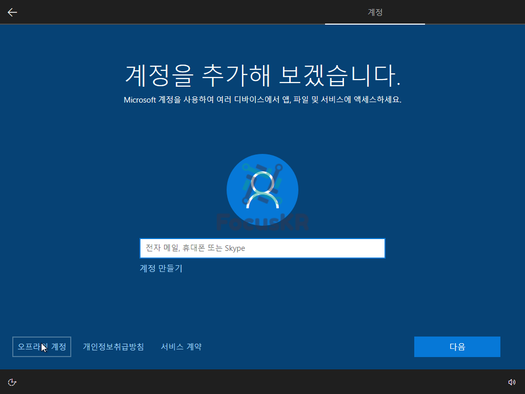 - 오프라인 계정이라는 버튼이 보이지 않는다면 아래 접은 글을 확인해주세요.