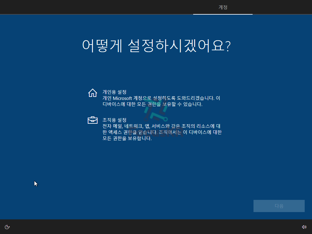 STEP 5. '개인용 설정'을 선택합니다. (기업은 '조직용 설정'은 선택하셔야 합니다.)