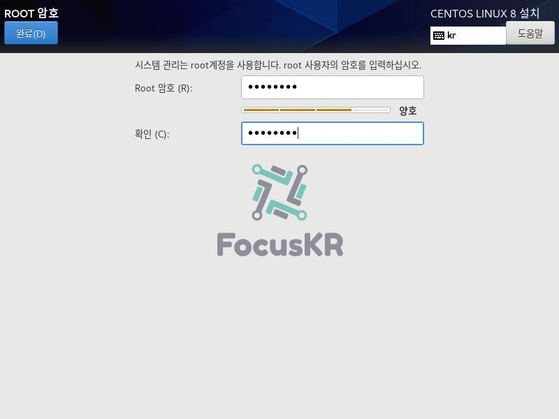 10. 설치를 진행하는 과정에 Root 비밀번호를 지정하실 수 있으며 가급적 반드시 지정해주시는 것을 권장합니다.