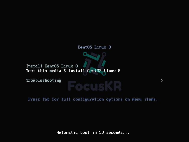 3. CentOS를 마운트하여 'Install CentOS Linux 8' 을 선택하고 부팅합니다.