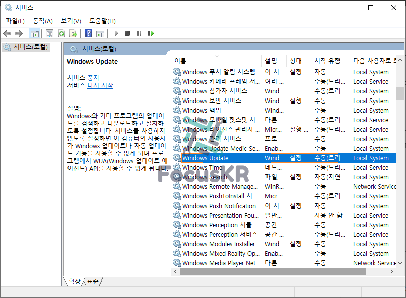 2. 서비스 목록 중 'Windows Update'를 찾아 더블클릭을 합니다.