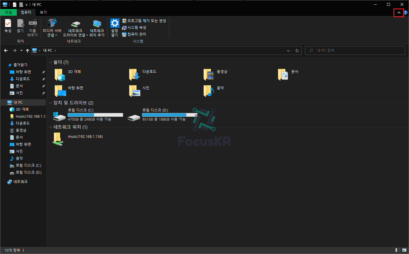 이번에는 윈도우10에서 파일 탐색기 상단 메뉴를 숨기는 방법에 대해 알려드리겠습니다.
