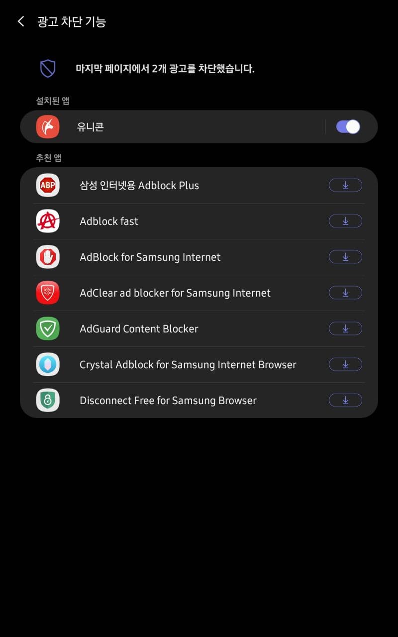 필자는 "유니콘"이라는 광고 차단 앱을 사용을 하며 유료 앱입니다. 그렇기에 유료 앱을 이용하시기 힘드시다면 다른 무료 앱을 이용하셔도 괜찮습니다.