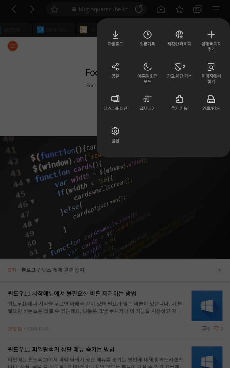 그럴 때 삼성 인터넷 브라우저 앱을 실행하여 설정에 들어가시면 광고 차단 기능의 탭이 있습니다.