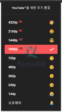 또한 볼 수 없는 해상도를 선택해도 현재 볼 수 있는 최고화질로 자동 조정됩니다.