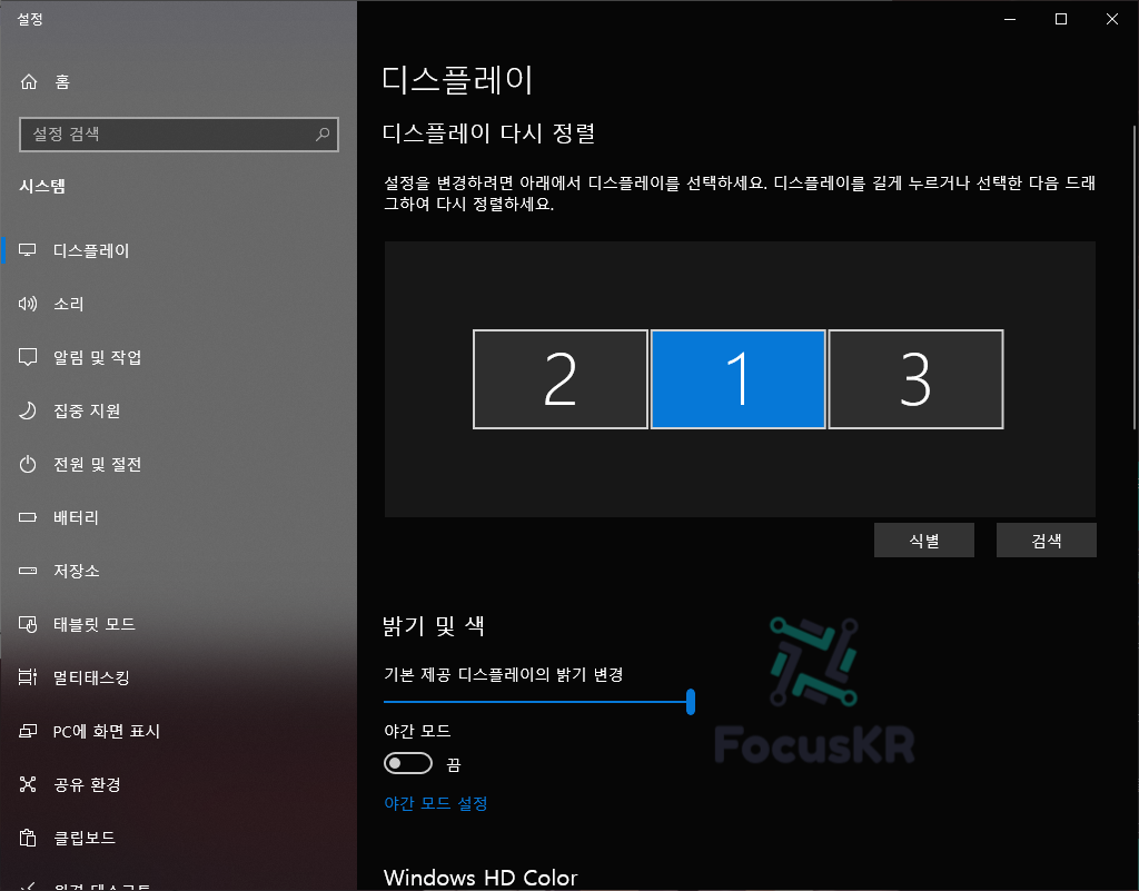 3. 3번째 모니터가 인식이 됬다면 순서를 배치하시고 편하신 설정으로 조정합니다.