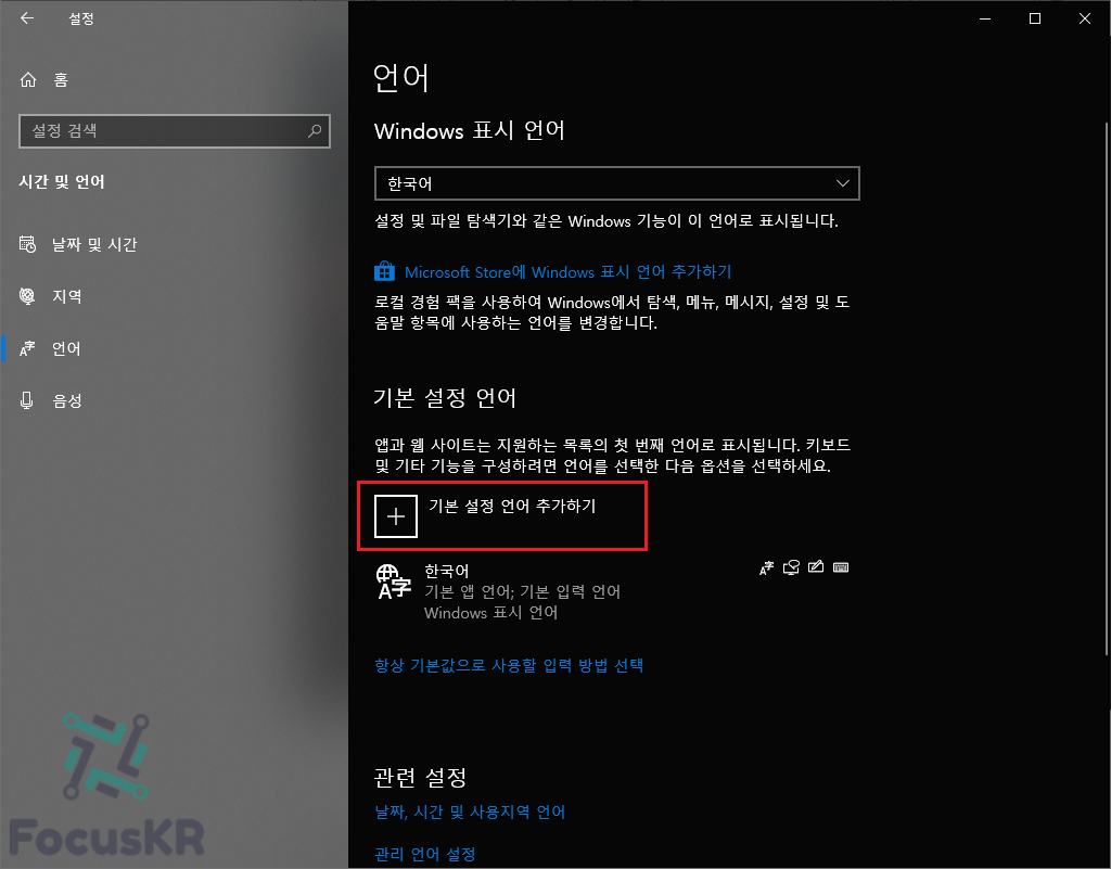 3. 중간에 있는 '기본 언어 설정 추가하기'를 누릅니다.