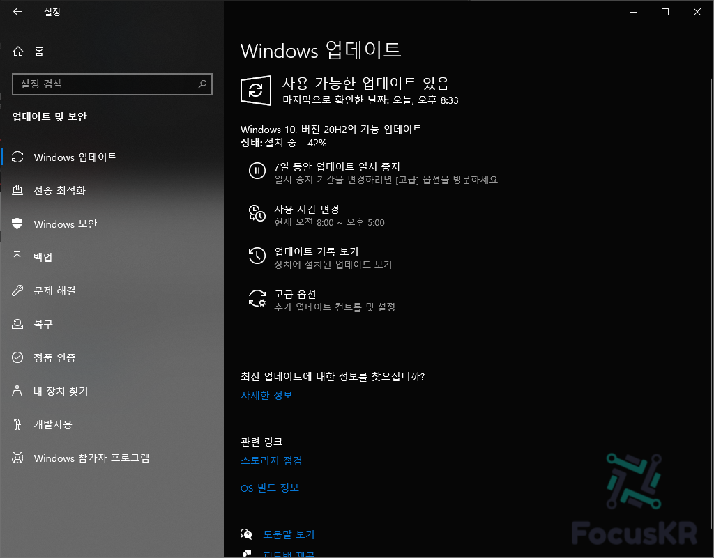 그래서 제가 간단하게 20H2 업데이트하는 방법을 알려드리겠습니다.