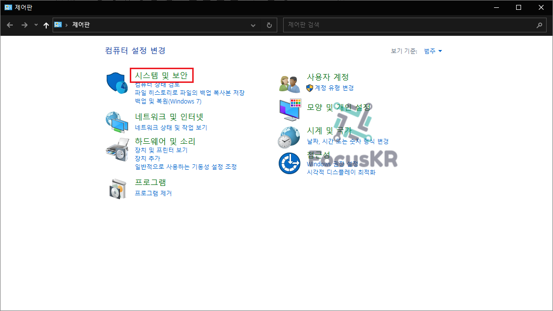 1. 제어판에서 '시스템 및 보안'을 눌러줍니다.