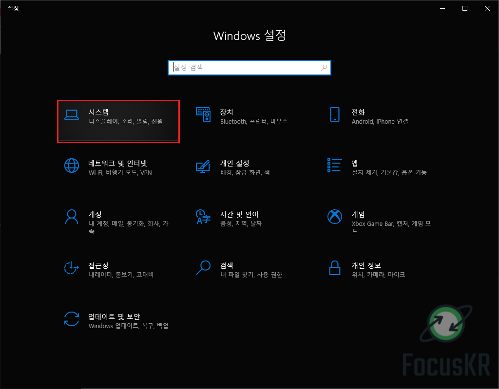 1. 윈도우 키와 i를 동시에 눌러 설정을 열고 '시스템'으로 이동합니다.