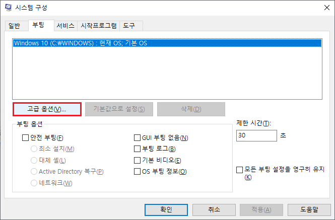 3. 고급 옵션을 눌러줍니다.