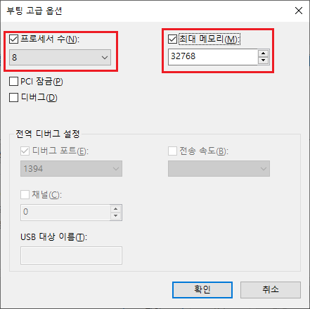 4. 프로세서 수와 최대 메모리를 체크하고 프로세서 수는 가장 높게 설정하고 최대 메모리는 체크하면 자동으로 입력됩니다.