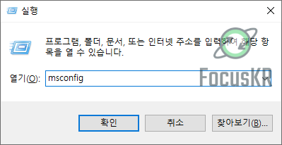 1. 윈도우키와 R을 동시에 눌러서 실행을 여신 다음 'msconfig'을 입력하고 엔터를 누릅니다.
