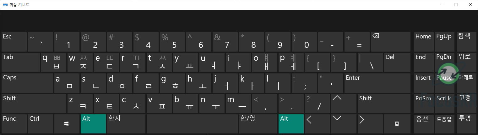 윈도우10에서는 화상 키보드라고 표시를 하고 있으며 실행을 하게 되면 아래와 같은 화면이 나타나게 됩니다.