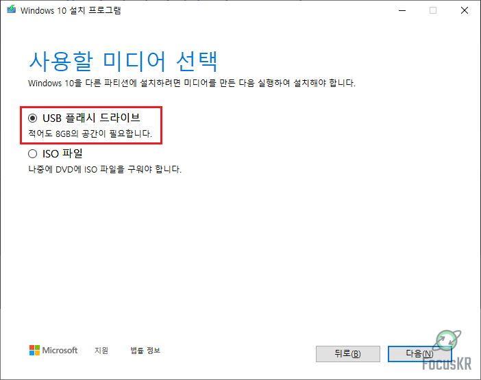 6. USB 플래시 드라이브를 선택하고 '다음(N)'을 눌러줍니다.