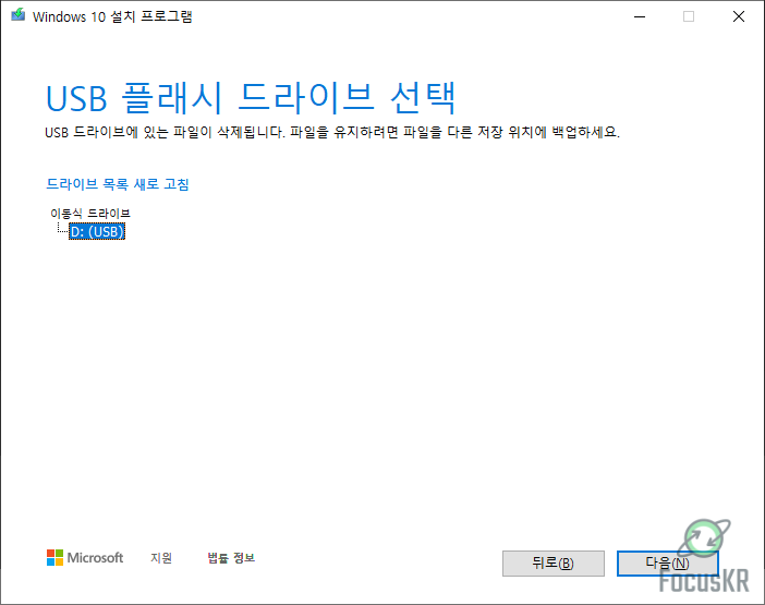 7. 연결했던 USB로 선택하신 다음 '다음(N)'을 눌러줍니다.