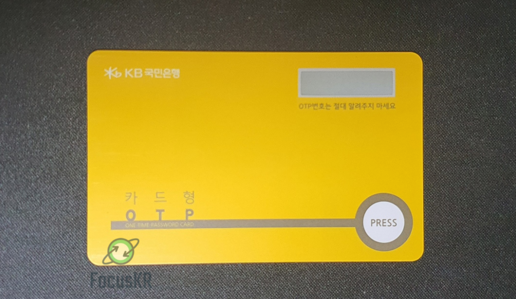 보통은 열쇠고리형으로 만들어진 OTP를 사용하지만 요즘은 열쇠를 사용하는 시대가 아닌 스마트키, 스마트폰을 사용하는 시대이다 보니 열쇠고리라고는 들고 다니는 게 없어 필자는 카드형 OTP로 해보았습니다...