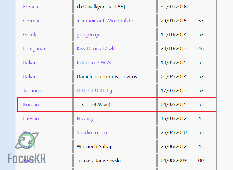 해당 사이트에서 맨 아래 내리시다 보면 아래 이미지와 같이 한국어를 다운로드하실 수 있으며 윈도우10에서도 사용하실 수 있습니다.