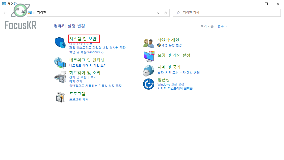 1. 제어판을 열고 '시스템 및 보안'을 클릭합니다.