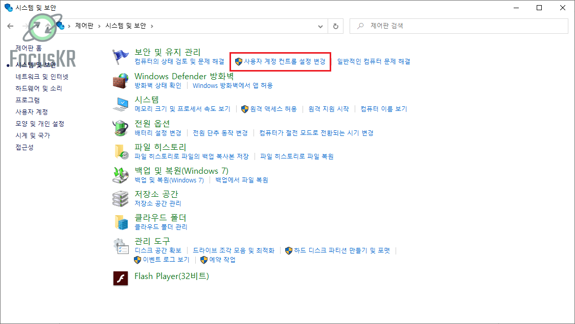 2. 상단에 있는 '사용자 계정 컨트롤 설정 변경'을 클릭합니다.