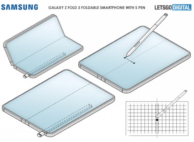 하지만 갤럭시 폴드 시리즈의 특성상 S펜을 노트 시리즈처럼 내장 탑재할 수 있는 방식이 되기에는 어렵지 않을까 생각되지만 삼성전자의 특허를 확인하면 내장 탑재할 수 있도록 디자인을 수정한 특허가 출원되었음을 확인할 수 있습니다.