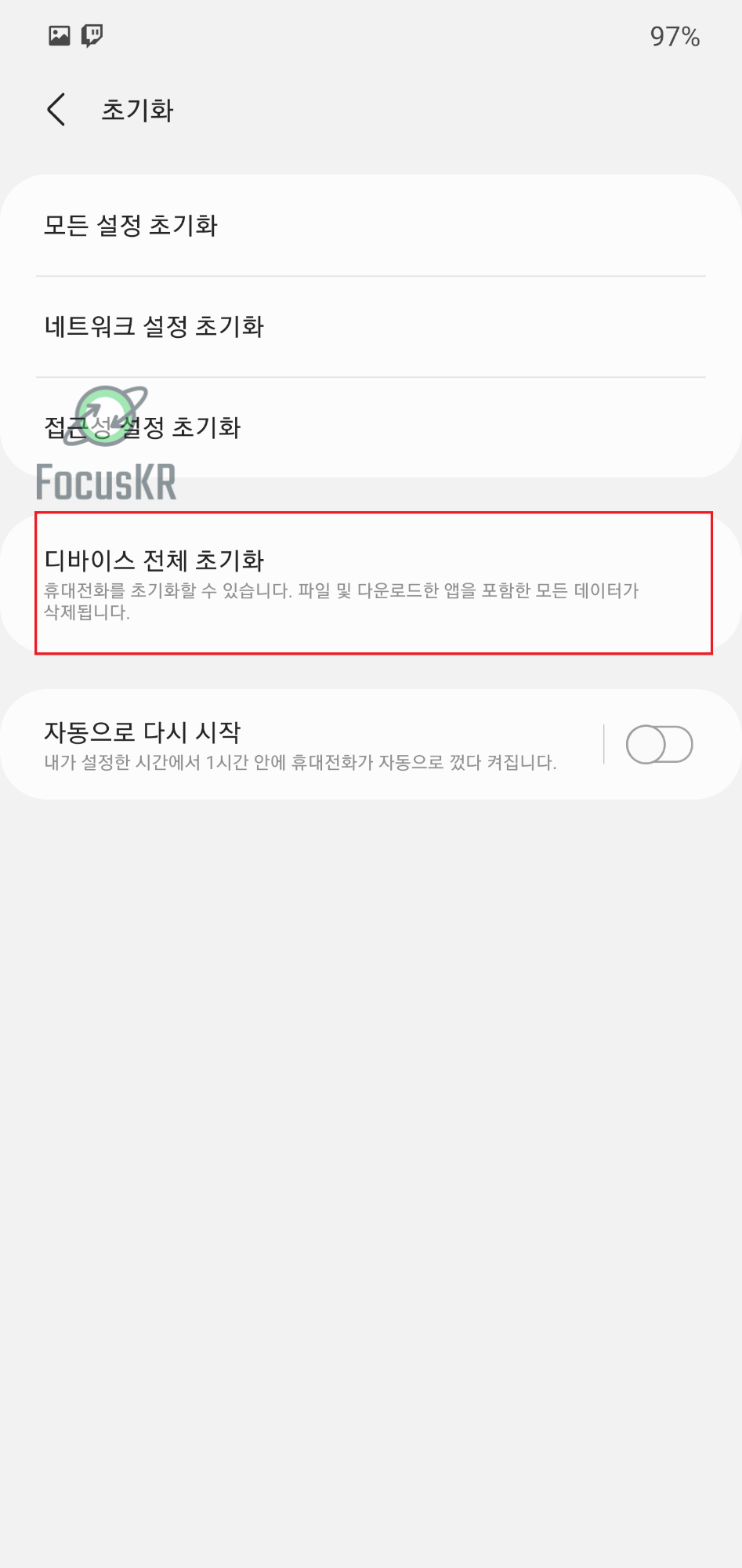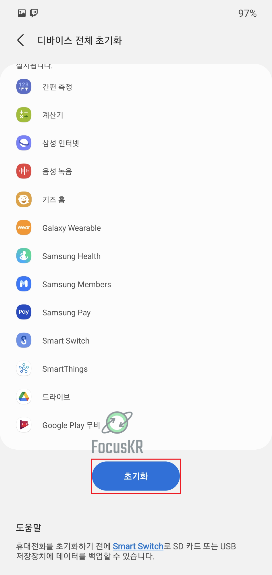 3. '디바이스 전체 초기화'를 눌러줍니다.
