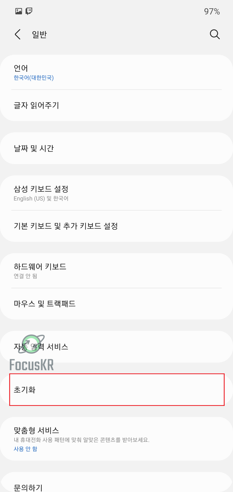 4. '초기화'를 통해서 간단하게 초기화하실 수 있습니다.
