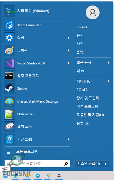 윈도우10 시작 메뉴를 보면 몇몇 분들은 잘 사용하시겠지만 대부분은 쓸대가 없는 타일과 프로그램을 쭉 늘여놓은 것이 마음에 안 드시거나 윈도우7에 적응하여 윈도우10 시작 메뉴에 맞지 않으시는 분들이 계실 수도 있습니다.