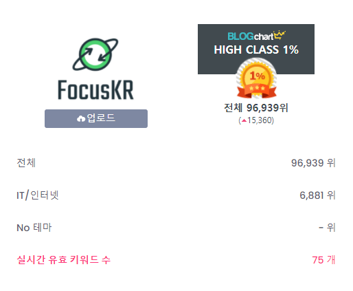저는 블로그 차트에 등록한 상태로 있었는데 어느 순간 상위 1%의 블로그로 선정되었습니다.