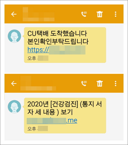 옛날에는 경찰, 검찰과 같은 공공기관을 사칭하여 가짜 웹 주소를 담은 문자를 발송하였으나 요즘에는 택배나 경조사, 민원 등 심지어는 카드 결제 알림 문자까지 사칭하기도 합니다.