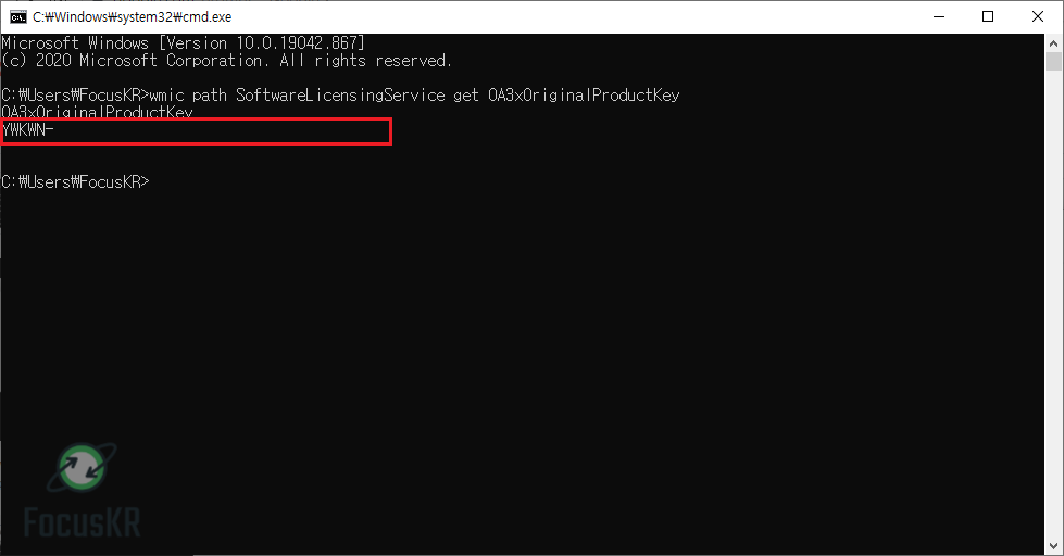 명령 프롬프트를 실행하신 다음 위 코드를 그대로 넣으셔서 실행해주시면 바로 현재 사용중인 라이센스 키를 확인하실 수 있으며 따로 메모하여 나중에 라이센스 키 입력이나 검증에 사용하시면 되겠습니다.