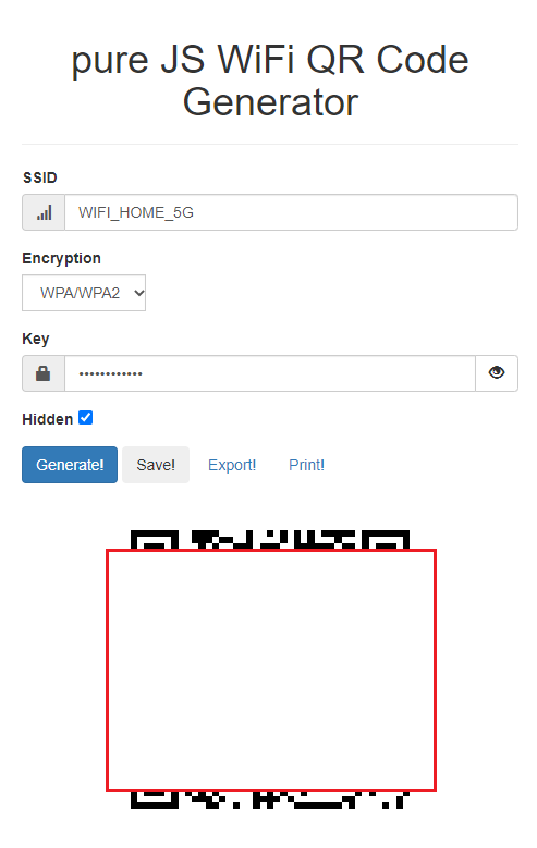 pure JS WiFi QR Code Generator