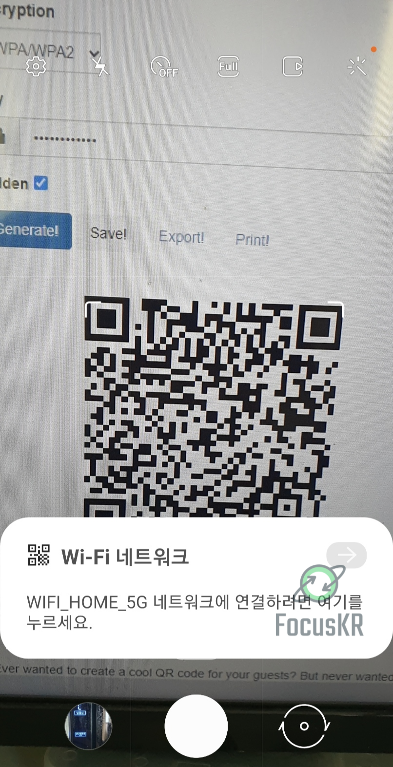 매우 간단합니다! 휴대폰의 카메라를 실행하셔서 가져다 대기만 하면 WiFi로 바로 연결할 수 있으며 비밀번호가 노출되지 않고 연결할 수 있게 됩니다.
