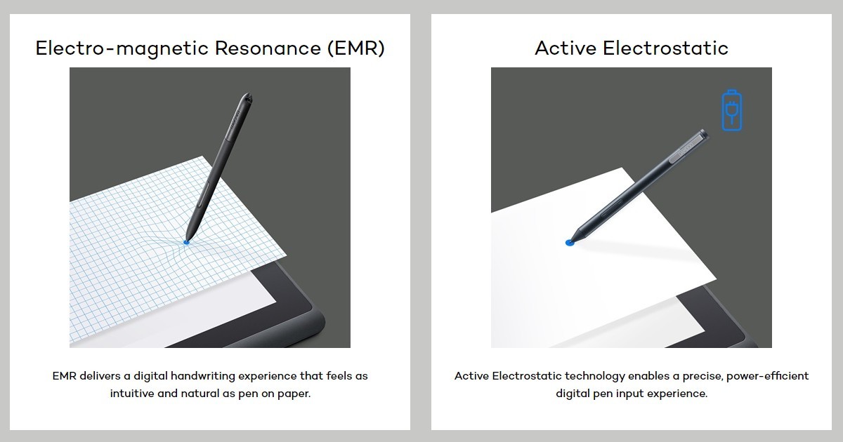 터치감도는 EMR 방식이 매우 우세하며 AES와는 비교가 안될 정도로 매우 정밀한 인식이 가능하며 삼성전자 S펜과 마찬가지로 틸트1를 지원할 수 있습니다.