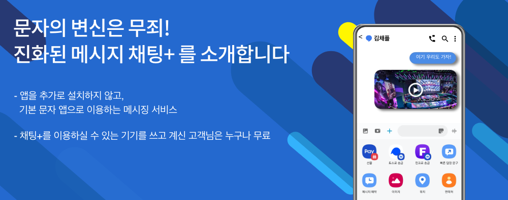 채팅플러스는 한국 3사 통신사에서 운영하고 있는 차세대 문자 시스템으로 문자를 마치 채팅하는 느낌으로 전송할 수 있어 SNS가 없어도 충분히 SNS에 못지않은 기능을 제공하고 있습니다.
