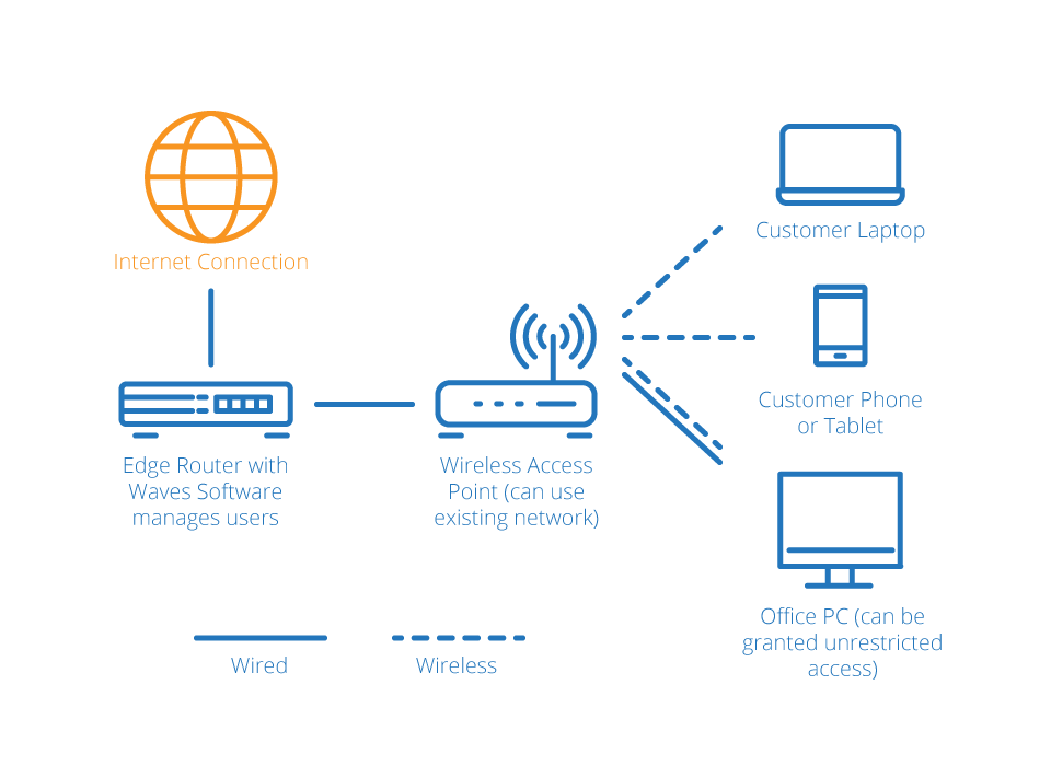 WiFi를 송신하는 장비에서 수신할 수 있는 기기가 연결될 경우 무선 주파수를 통해 일정 거리 내에서 언제든지 인터넷을 할 수 있는 방식으로 유선보다는 손실률이 높은 구조로 동작합니다.