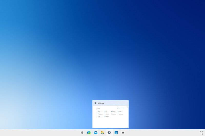 윈도우10의 경우 왼쪽으로 아이콘을 몰아서 표시하고 오른쪽에는 시간이나 트레이 아이콘이 자리를 잡았으나 윈도우10X부터는 크롬 OS와 마찬가지로 중앙으로 아이콘이 배치되었으며 모든 처리 방식이 중앙 중심의 UI/UX로 변경되었습니다.
