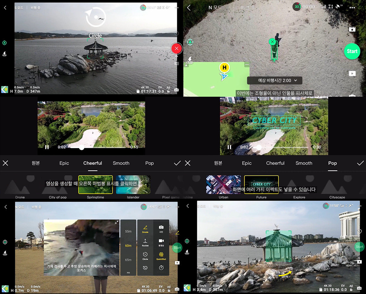 dji mini2은 어려운 기술을 사용하는 전문가가 아니라도 쉽게 제작할 수 있고, DJI Fly 앱에 전용 편집 도구가 있어서 직접 편집하거나 사진 화질 향상 옵션으로 자동 보정을 할 수도 있습니다.