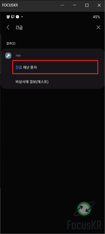 3. 검색에서 '긴급'을 검색하면 '긴급재난문자'가 보이며 해당 메뉴를 눌러줍니다.