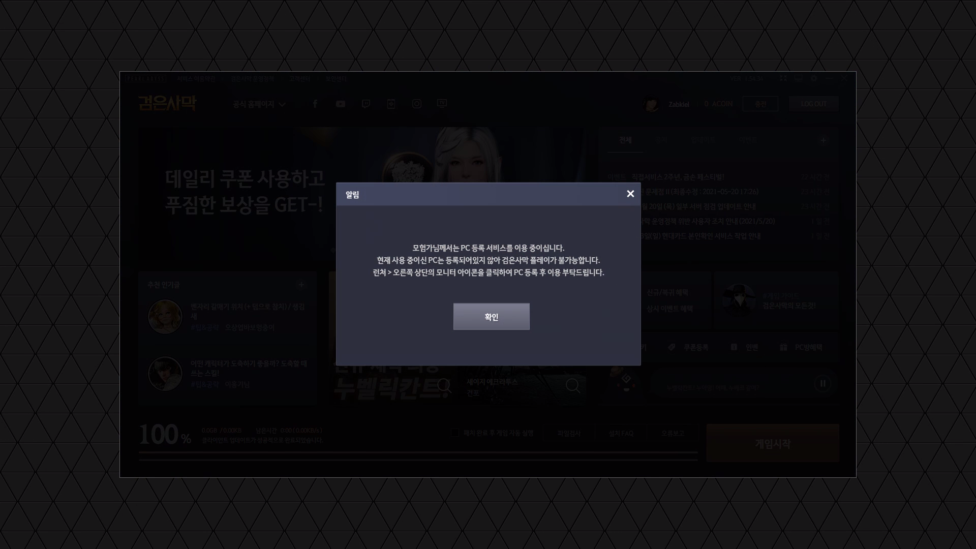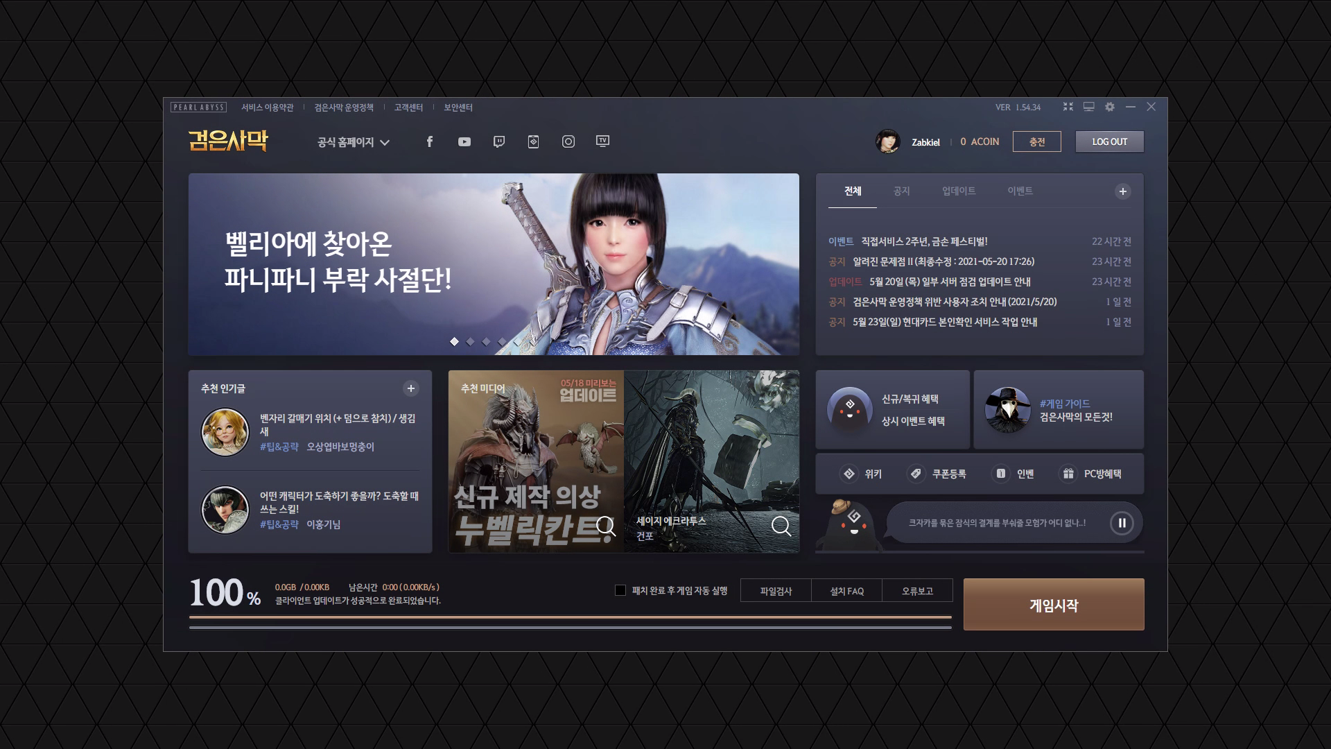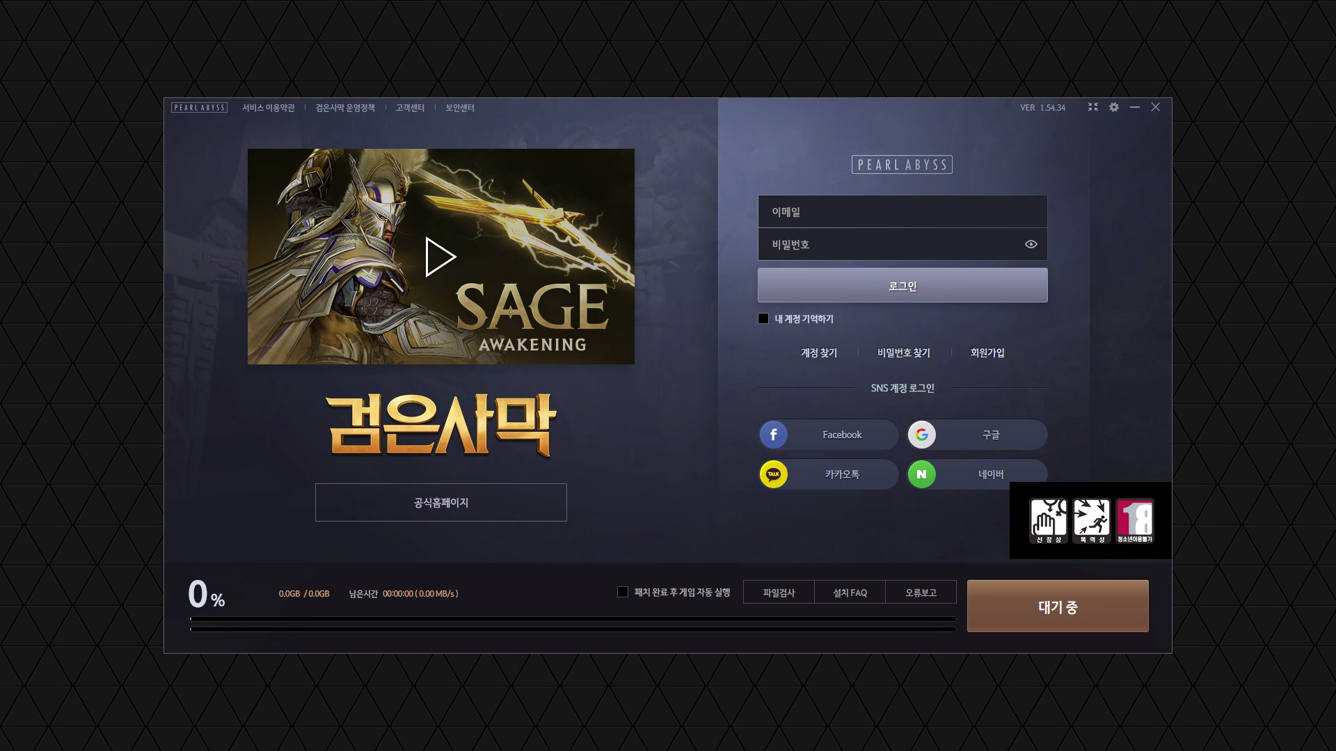 검은 사막을 플레이하자 흔히 보던 런처 화면이 보였고 이 화면은