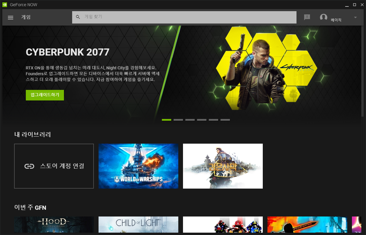 온라인 게임을 일체 설치되어 있지 않고 제가 주로 하는 게임만 지포스 나우로