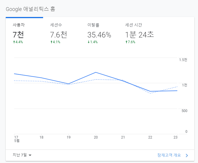 스킨을 변경한 17일 기준에서 확인해보니 애널리틱스에서도 감소 추세가 보였으나