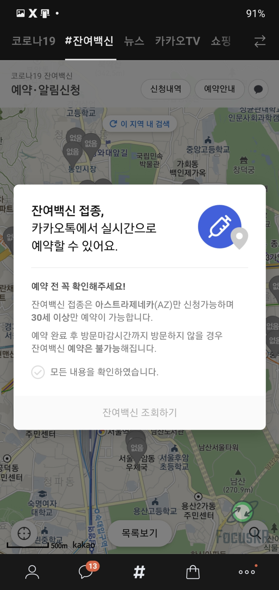 현재 위치 기반으로 주위에 잔여백신 재고량을 확인하실 수 있으며