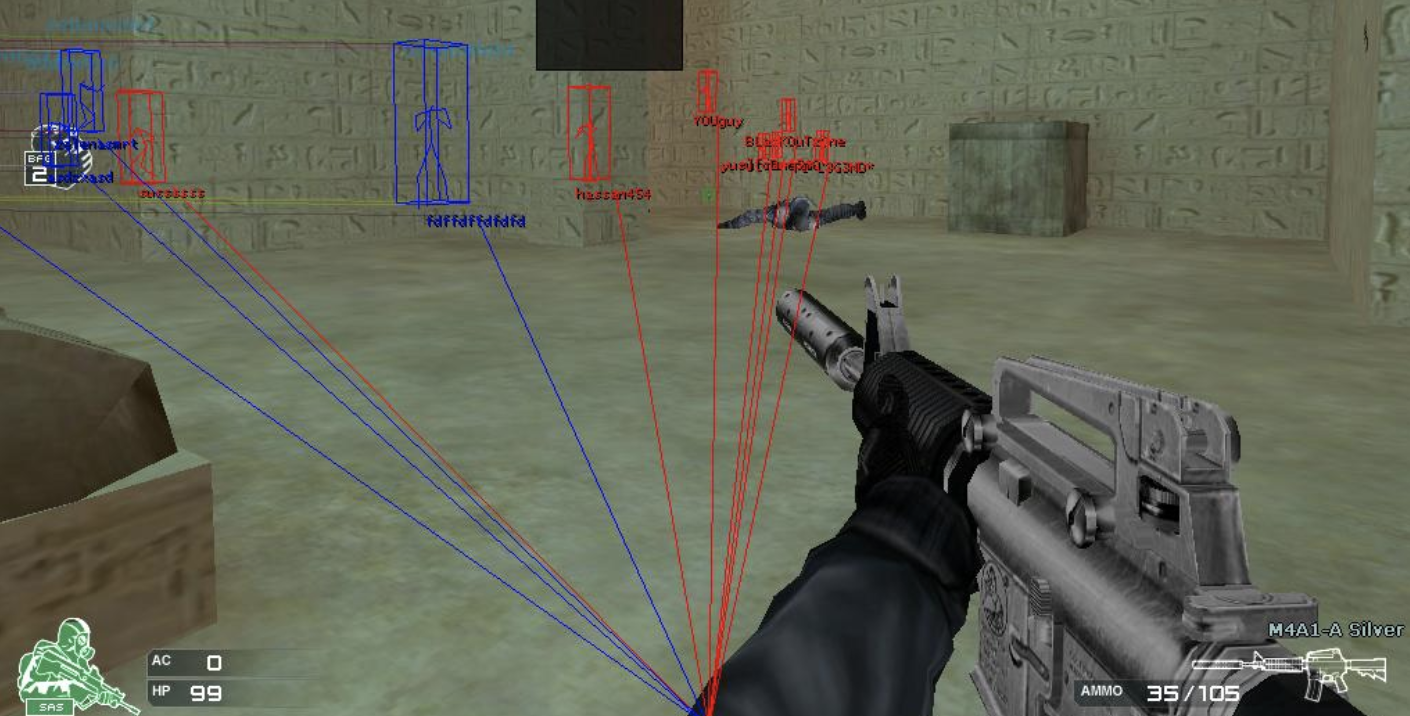 게임 핵은 메모리나 스크립트를 변조하여 원래 의도와는 다른 방식으로 동작하도록 만든 것인데 메모리를 변조하거나 클라이언트를 변조하는 행위들로 상대방의 위치가 보인다거나 벽을 뚫는 등 다양한 행위를 할 수 있게 되는 것입니다.