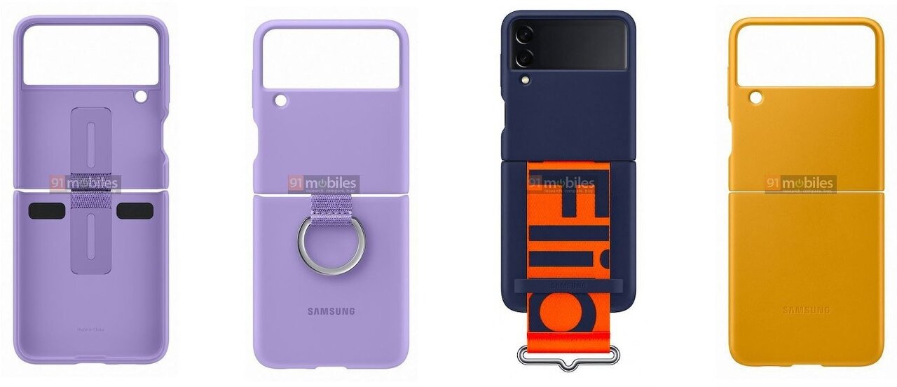마찬가지로 인도의 IT 매체인 91 모바일을 통해 삼성전자 Z플립3의 공식 케이스로 추정되는 렌더링 이미지가 추가로 유출되면서 당황스러우며 진짜로 이렇게 나오는지 의심스러울 정도로 케이스에 기본적으로 링이 부착되어 있고 어떤 케이스는 FLIP이라는 글씨가 세겨진 탄성이 있는 끈으로 추정되는 케이스도 공개되었습니다.