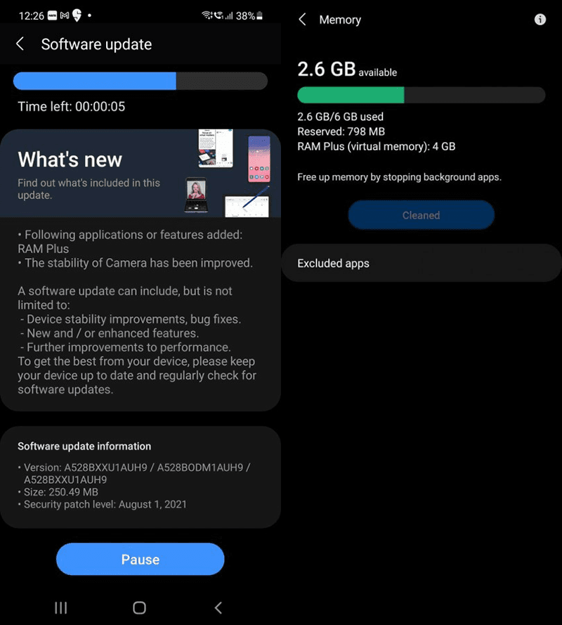 또한 ONE UI 자체가 많은 메모리를 사용하는 시스템이기 때문에 램 플러스가 ONE UI의 메모리 점유 공간을 어느 정도 해소할 수 있으며 전체적으로 완벽하게 까지는 아니지만 도움이 되는 부분입니다.