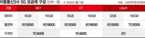 이번 각 통신사는 가장 저렴한 5G 요금제와 그다음 단계의 요금제 사이에 데이터 차이가 많게는 100GB에 가까울 정도로 엄청난 차이를 보여주어 중간에 실제 사용자들이 필요한 데이터 양만큼 쓰려면 2만 원가량을 더 내야 한다는 사실에 의해 중간 요금제가 생겨나게 됩니다.