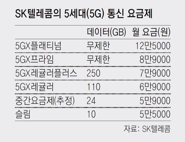 현재 중간 요금제 계획은 SKT를 제외한 다른 KT와 LG에서는 공개된 자료가 없어 알 수 없는 상태인데 SKT를 확인해보면 24GB 정도의 데이터를 제공하면서 5만 9000원이라는 요금으로 책정이 될 것으로 보고 있지만 애매한 부분이 다소 존재합니다.